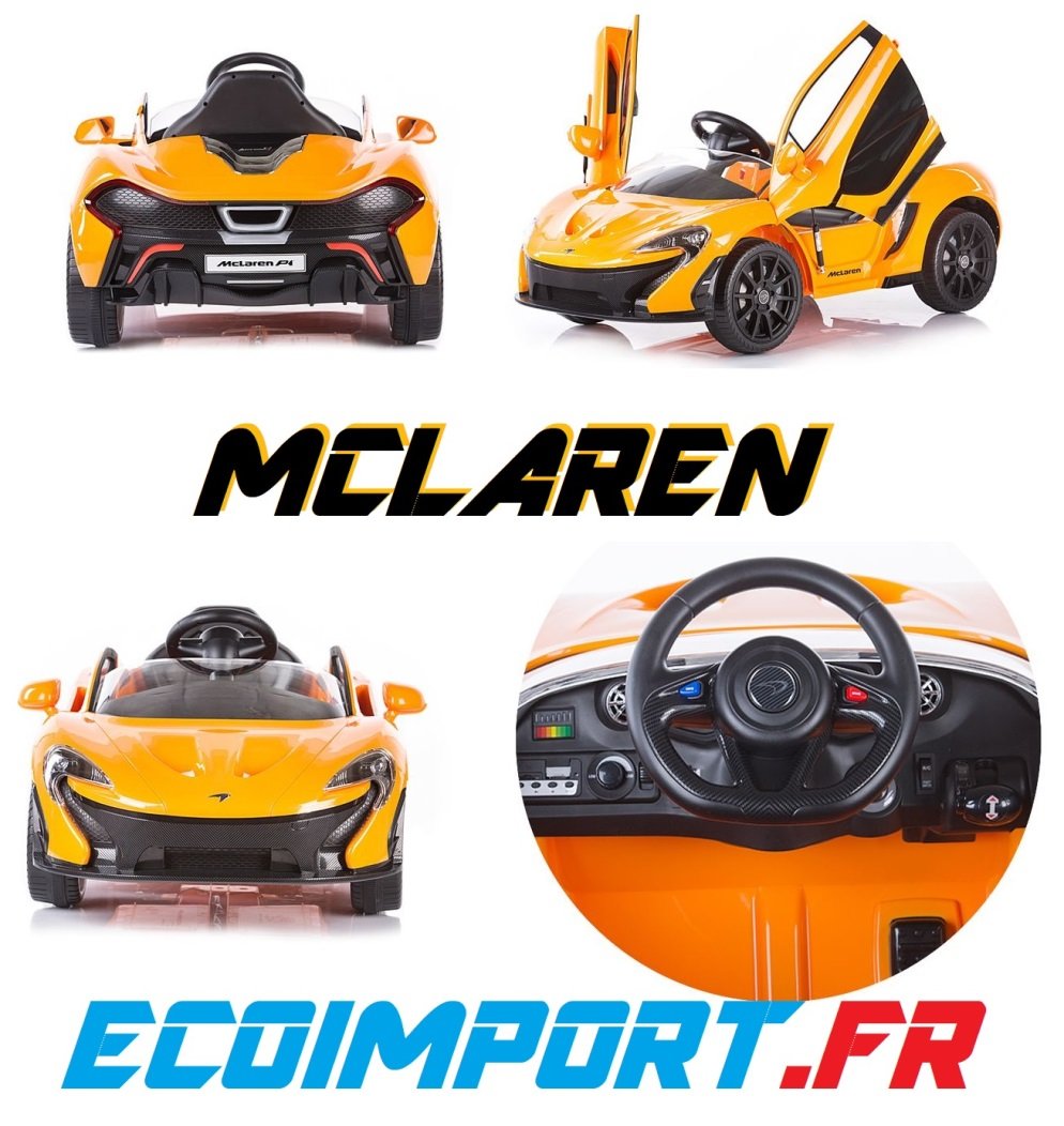 MCLAREN VOITURE ÉLECTRIQUE : + TÉLÉCOMMANDE PARENTALE + L'ENFANT PEUT CONDUIRE + 2 MOTEURS 40W + FACILE A CONDUIRE + BRANCHEMENT MP3 AU VOLANT POUR LA MUSIQUE + VOITURE AVEC MARCHE AVANT + MARCHE ARRIÈRE + VITESSES AUTOMATIQUES = FACILE A CONDUIRE |