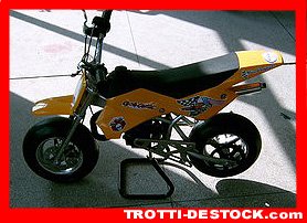Caractéristiques Techniques : Moteur thermique: 49cc Mono cylindre Puissance : 3.5cv Refroidissement par air Réservoir : 1L Essence : 98 Autonomie : environ 30 Km Vitesse : environ 60 Km/h Poids : 23 Kg Pneus : tubeless Pneus : Slick Charge maxi : 110 Kg Démarrage : Manuel Frein à disque AV et AR Trousse à outils, manuel d'utilisation, béquille Dimension : 99*59*35cm Mélange 1: 25 (4%) Pression des pneus : 1,50 BARS Couleurs : bleu, rouge, noir, jaune, vert (selon stock) |